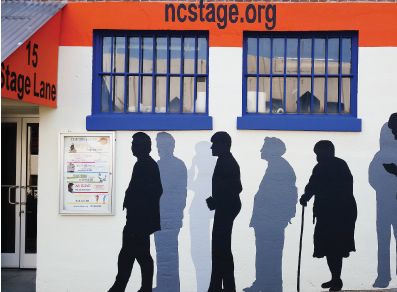 Patrons of Asheville's North Carolina Stage Company lining up for a great performance of A Life of Sorrow.
