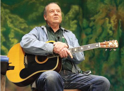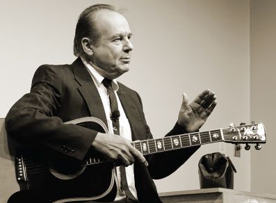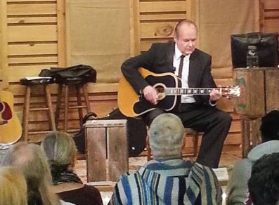 Working on a sound-check before taking on the persona of Carter Stanley.