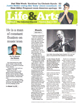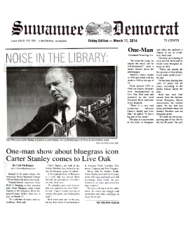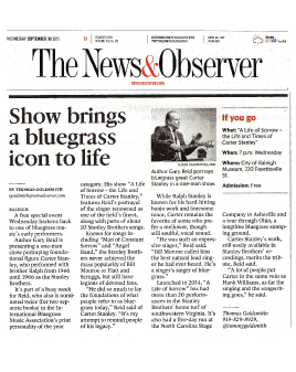 “Your program, A Life of Sorrow based on Carter Stanley, was an incredible performance that brought history to life for the packed crowd in our museum. Your talents allowed our audience to learn about this influential performer, and his time, in a way that museum exhibits cannot communicate. It was a wonderful experience that I would recommend to any venue that wants to engage visitors in an entertaining and engaging way.” Ernest Dollar, Director, City of Raleigh Museum, Raleigh, North Carolina